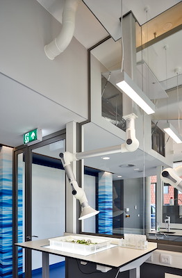 Laboratory rooms with single glass partition wall