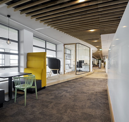 Het resultaat is een kantooromgeving waarin de identiteit van Credit Agricole op stijlvolle wijze tot uiting komt – een plek waar duurzaamheid, design en functionaliteit samenkomen in een tijdloze vormgeving.