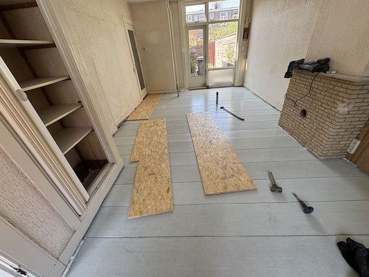 Onze specialiteit is het vervangen van vloeren binnen een dag, met minimale overlast voor bewoner. In dit specifieke project, uitgevoerd in opdracht van Elk Groep uit Vlaardingen voor woningcorporatie WoonInvest, worden de bewoners tijdelijk elders gehuisvest vanwege de omvang van de werkzaamheden. Hierdoor kunnen we ook het leidingwerk onder de vloer vernieuwen, waardoor de totale vloerrenovatie twee dagen in beslag neemt.