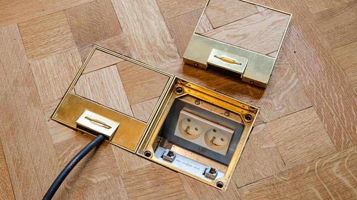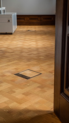 Bij de keuze voor OBO’s ondervloersystemen waren vooral de beperkte inbouwdiepte en de strenge esthetische eisen doorslaggevend. De subtiele integratie van stroom- en datavoorzieningen zorgt ervoor dat het historische karakter behouden blijft zonder in te leveren op moderne functionaliteit.