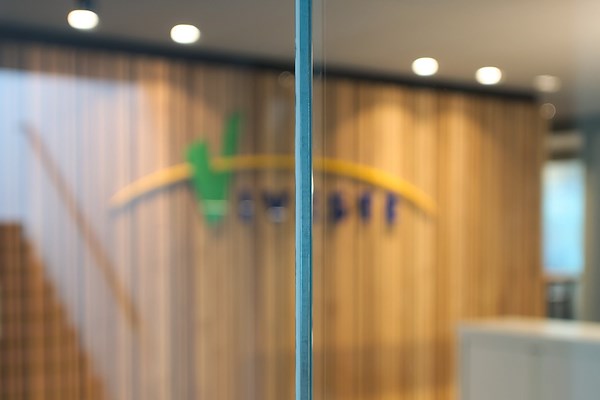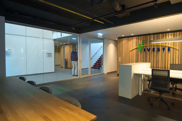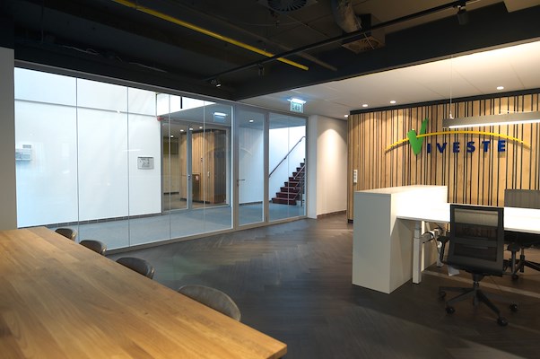 In het interieur van het vernieuwde kantoor van woningcorporatie Viveste in Bunnik is gekozen voor hoogwaardige en veilige afwerkingen die bijdragen aan zowel esthetiek als functionaliteit. Een belangrijk onderdeel hiervan is de toepassing van de iQ-Protect brandwerende glaswand, voorzien van een EW30-classificatie. Deze glaswand biedt niet alleen transparantie en een moderne uitstraling, maar garandeert ook 30 minuten bescherming tegen de verspreiding van vuur en rook, conform de geldende brandveiligheidseisen.
