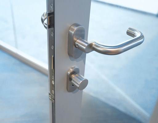 Zero-joint between the glass panels of this IQ-Protect fire resistant framed door EW30