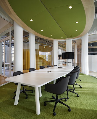 Op meerdere etages zijn royale, open werkvloeren gecreëerd die samenwerking en transparantie bevorderen. De grote ruimtes zijn licht en uitnodigend, waarbij het historische karakter naadloos gecombineerd wordt met eigentijdse elementen. Tegelijkertijd is er ook aandacht besteed aan de behoefte aan rust en concentratie. Verspreid door het gebouw zijn kleine, kleurrijke concentratie-units geplaatst. Deze units bieden medewerkers de mogelijkheid om zich tijdelijk terug te trekken voor gefocust werk of vertrouwelijke gesprekken.