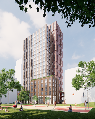 Het project Sluisbuurt (Kavel 6B2) in Amsterdam bestaat uit een gedeelte laagbouw en twee hoogbouwtorens. In dit complex worden 525 studio’s voor studenten gerealiseerd met een unieke gevel die het thema ‘thuis’ krijgt. mbX realiseert deze gevel waarin onder andere de pictogrammen van illustrator Stang Gubbels terugkomen.