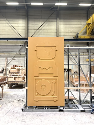 mbX verwerkt deze pictogrammen als reliëfs in dunne gevelpanelen. De laagbouw wordt aangekleed met uitstekende kolomelementen en terugliggende vlakke panelen en bestaat uit twee gedeeltes die ieder een eigen kleur krijgen. De elementen in de laagbouw worden glad uitgevoerd. De hoogbouw bestaat uit een ‘rode’ en een ‘gele’ toren. Beide torens worden ‘aangekleed met kolomelementen en vlakke panelen.