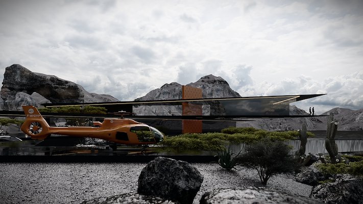 Deze villa is ontworpen als ode aan Virgil Abloh, waarbij architectuur, mode en kunst samensmelten tot één krachtig gebaar. Het ontwerp grijpt terug op zijn werk voor Louis Vuitton en Off-White, met iconische elementen als oranje accenten, kettingdetails en typografische statements.