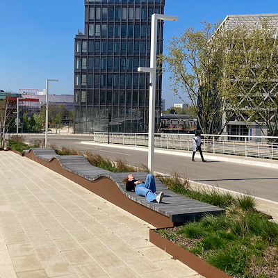 De natuurlijke uitstraling van het meubilair sluit aan bij de bredere ecologische doelstellingen van het project: het vergroot het milieubewustzijn en is tegelijkertijd praktisch en comfortabel. Essentieel hierbij is de keuze voor FSC®-gecertificeerd hardhout als voornaamste materiaal. Het fraaie hardhout vormt niet alleen een aanvulling op de natuurlijke omgeving en de overkoepelende esthetiek, maar is ook essentieel voor de levensduur en duurzaamheid van het ontwerp. Architecte Cécilia Amor benadrukt dat de dikke, duurzame houten delen ervoor zorgen dat het meubilair bestand is tegen de elementen. Daardoor is het uitzonderlijk slijtvast en heeft het een lange levensduur: “We kozen voor hout omdat het perfect past in deze natuurlijke, groene omgeving in het hart van de Seine. Het is een materiaal dat uitnodigt om te gaan zitten en te ontspannen en dat tegelijk op een duurzame manier veroudert.”