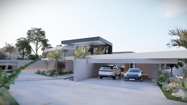 Het ontwerp is gestoeld op eenvoud en helderheid. Heldere lijnen, open plattegronden en natuurlijke ventilatie maken de villa niet alleen esthetisch krachtig, maar ook functioneel afgestemd op het tropisch klimaat. De overgang tussen binnen en buiten vervaagt dankzij schuifpuien, doorlopende vloeren en een centrale patio die lucht en licht diep de woning in trekt.