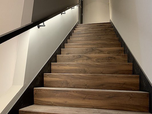 Rusthoff is een eigentijds appartementencomplex waarin wooncomfort en een verzorgde uitstraling centraal staan. De trappenhuizen vormen een belangrijke verbinding tussen de verdiepingen en zijn dagelijks in gebruik door bewoners en bezoekers. Daarom is gekozen voor een oplossing die niet alleen functioneel is, maar ook esthetisch past binnen de architectuur van het gebouw.