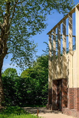 Het nieuwe gebouw is ontworpen met de menselijke maat en een warme uitstraling als uitgangspunt. De houten gevel met verticale lamellen geeft het pand een gastvrije en natuurlijke uitstraling en sluit mooi aan bij de groene omgeving van het nabijgelegen park aan de Jan Luykenkolk.