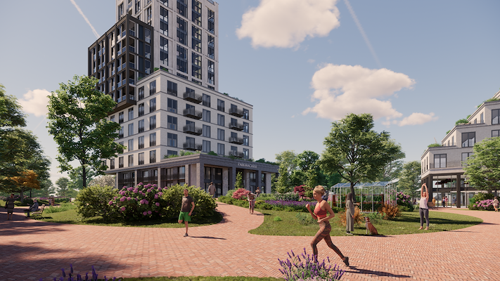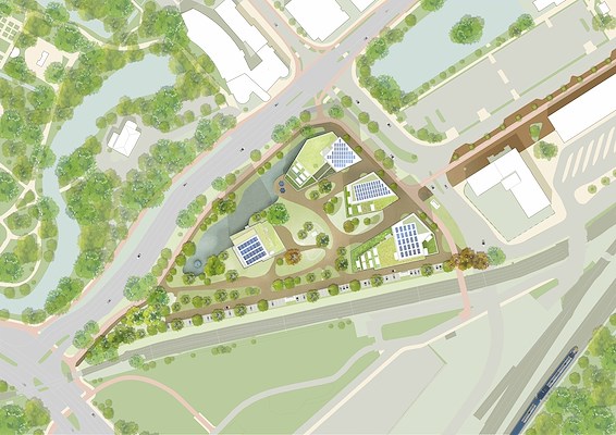 Om levendigheid te creëren, wordt ingezet op een publieke verbinding door het plan heen. Langs deze openbare verbinding worden commerciële functies geschakeld waardoor een gemengd stedelijk gebied ontstaat. Aan de landschapszijde komt een horecagelegenheid, wat verdere levendigheid stimuleert. Het gehele plan is autoluw, waardoor zoveel mogelijk ruimte wordt ingezet om de buitenruimte te vergroenen en landschappelijk in te richten met een landgoed-waardig kwaliteitsniveau.