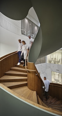 Wenteltrap als verbindend hart in UMC, Groningen