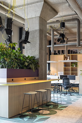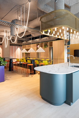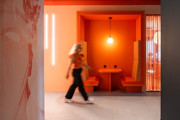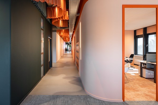 Bezoekers krijgen letterlijk een kijkje achter de schermen, terwijl medewerkers dagelijks werken in een omgeving die hun artistieke proces weerspiegelt. De indeling over twee verdiepingen – gericht op werken en ontmoeten – versterkt de dynamiek, en details als organisch gevormde gordijnen zorgen voor een sierlijke, akoestisch sterke ambiance. Een werkplek als podium voor ontmoeting, inspiratie en expressie.