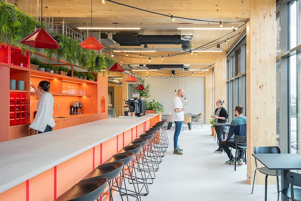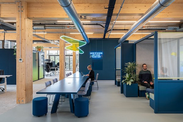 Voor Valtech ontwierp Hal2 een circulaire werkomgeving in Houtwerk 2, op Campus Werkspoor in Utrecht – een plek waar technologie en creativiteit samenkomen. Het interieur ademt innovatie, met 76% hergebruikt meubilair, gerecyclede materialen zoals Greencast verlichting, en een houten gebouw als duurzame basis. Maar het ontwerp gaat verder dan materiaalgebruik: het stelt de gebruiker centraal. Een divers palet aan sferen en plekken maakt dat iedereen zich welkom voelt. Van rustige hoeken voor focus tot Motivation Spots die aanzetten tot reflectie en ontmoeting. Het kloppende hart is de Urban Garden – een multifunctionele ruimte waar gewerkt, ontspannen én gefeest wordt. Overdag een dynamisch werkgebied, ’s avonds een verborgen dansvloer. Een werkplek waar circulariteit, comfort en community samenkomen – precies zoals Valtech het voor ogen had. Een kantoor dat motiveert, inspireert en verbindt.