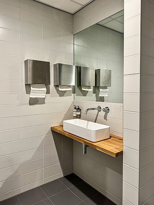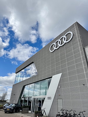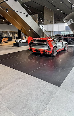 De basis is neutraal en rustig waardoor de Audi’s schitteren en prachtig in de showroom staan. Om extra nadruk te leggen is er gekozen voor het creëren van vloervelden. De warme kleur houtlook tegels zorgen voor sfeer.