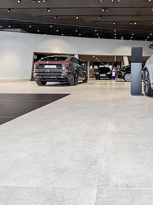Kort voor de officiële opening hebben wij de geleverde tegels mogen bewonderen in de prachtige Audi showroom. Hier is expres gekozen voor een groot formaat tegel van 1,20x1,20m van het merk Refin
