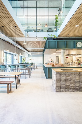 Een flexibel kantoorconcept, waarbij het interieur bestaat uit natuurlijke materialen