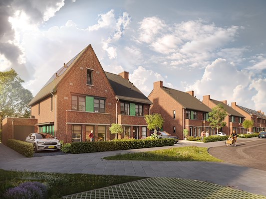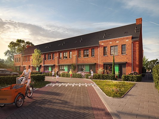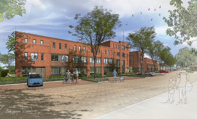 en een industriële stijl. Om de buurt aan te laten sluiten bij de bestaande woningen aan de Wezenlaan krijgen de randen een