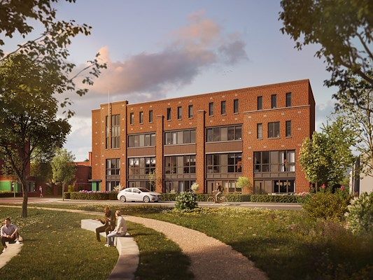 Voormalig fabrieksterrein wordt getransformeerd tot eigentijds industrieel woongebied.