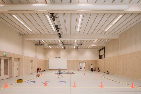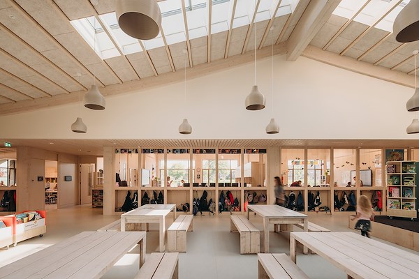 Het biobased schoolgebouw IKC De Brug in Nieuwerbrug aan den Rijn is ontworpen door De Zwarte Hond en heeft een volledig houten draagstructuur. Onder een gebogen, groen dak zijn peuterspeelzaal, basisonderwijs, buitenschoolse opvang en een gymzaal geïntegreerd rondom een centraal hart. Deze opzet bevordert samenwerking en multifunctioneel gebruik.