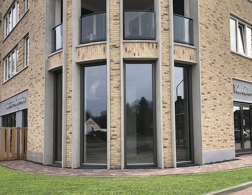 Zorgvuldig en subtiel gedetailleerd gebouw markeert de entree van de woonwijk