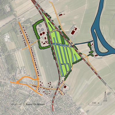 In plaats van een weiland volleggen met zonnepanelen om zo de energieopgave van de gemeente Soest op te lossen, ontwikkelden wij een visie om drie verschillende gemeentelijke opgaves met elkaar te combineren. In het plan is nu ruimte voor 350 tot 400 woningen voor verschillende doelgroepen met het accent op starters en senioren, die door de stedenbouwkundige opzet opgaan in het groen. Niet alleen de Nul-Op-de-Meter (NOM)-woningen worden voorzien van zonnepanelen, maar deze komen eveneens op de slimme geluidwering dat het geluid van de aangrenzende spoorlijn tegenhoudt. Zo zijn de woningen energieneutraal en wordt hier voor nog eens 700 reeds bestaande woningen extra energie opgewekt.