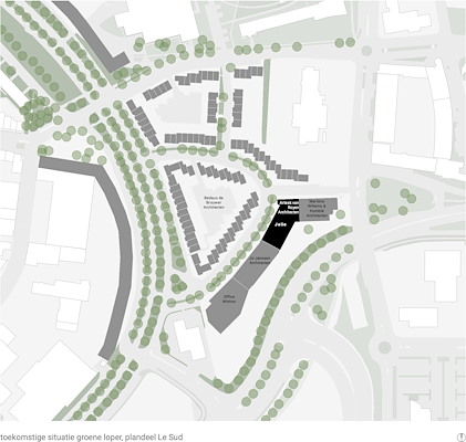 Het nieuwe stadsdeel Le Sud bevindt in het zuidelijk deel van de Groene Loper in Maastricht. Het appartementencomplex Jolie vormt samen met het woongebouw van Jo Janssen Architecten en het zorgcomplex van Martens Willems & Humblé Architecten één stedelijke wand.
