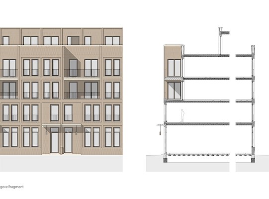 De detaillering van de gevel aan de stadszijde, grenzend aan de nieuwe woonwijk, wordt gekenmerkt door een rijke vormentaal in baksteen. Dit is een autoluw gebied waar de voorbijganger traag passeert en meer kan ervaren van de architectuur. De gevel grenzend aan de Kennedysingel passeer je met 70 km per uur, de architectuur is aan deze zijde eenduidiger en strakker gehouden. Het project is in bouwteam samen met de opdrachtgever, aannemer en adviseurs ontwikkeld, onder supervisie van West 8 en Fred Humblé.