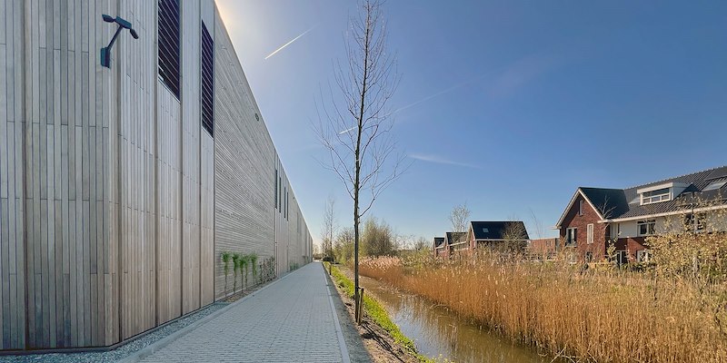 Het gebouw is ontworpen met een sterke focus op biobased en circulaire principes. Alle toegepaste materialen zijn zorgvuldig geselecteerd op basis van hun herkomst, recyclebaarheid en minimale milieubelasting. De gevels bestaan uit een ritmisch spel van verticale en horizontale houten latten van thermisch verduurzaamd Fraké Noir (FSC-gecertificeerd). Dit resulteert in een uniforme en natuurlijke uitstraling.