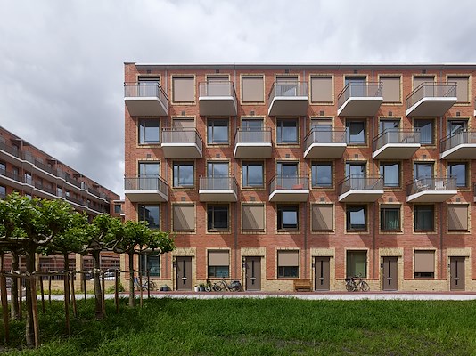 Baksteen speelt een sleutelrol in het project. Het metselwerk geeft de gebouwen zowel een eigentijds als tijdloos karakter. De gevels bestaan uit rood bakstenen metselwerk, met gele bakstenen kozijnen die de ramen en ingangen markeren. De kopgevels bevatten speelse patronen van gele baksteen, waarmee de blokken zich van elkaar onderscheiden. De balkons liggen buiten het gevelvlak. Ze zijn aan de onderzijde afgeschuind en hebben afgeronde hoeken.