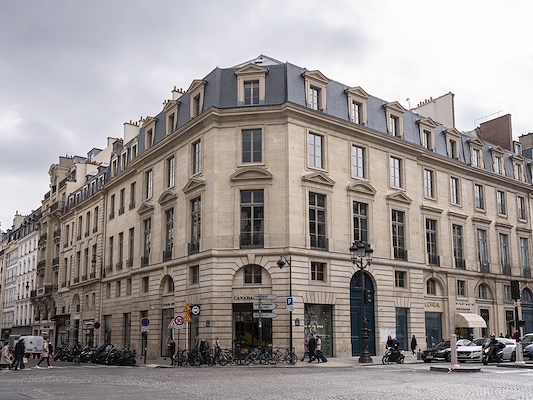 Het historische hoofdkantoor van L'Oréal, Parijs - Zicht op het gebouw vanaf 14 Rue Royale, Parijs.