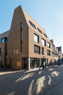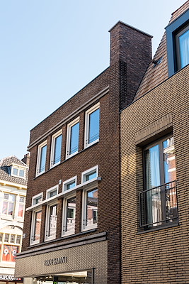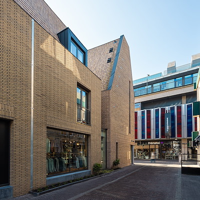 gebouwd tegenover Hoog Catharijne met 12 appartementen boven de nieuwe winkel. Het betreft nieuwbouw én transformatie van Broekman Herenmode. De karakteristieke gevel uit de jaren ’20 op de hoek van de Lange Elisabethstraat is gerestaureerd en de betonstructuur aan Achter Clarenburg is hergebruikt en opgetopt. Onze architectuur volgt de pandsgewijze percelen en zoekt aansluiting, zowel bij de maat van de binnenstad, als met de grootstedelijke schaal van het naastgelegen winkelcentrum. Vanuit Hoog Catharijne markeert een nieuw hoekpand de Korte Elisabethstraat. Ook qua uitvoering een uiterst complexe opgave in binnenstedelijk gebied. Opgeleverd in december 2024.