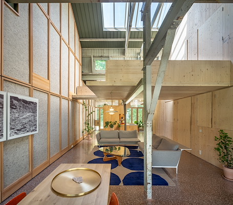 Interieur met wol, CLT en terrazzo van grafmonumenten