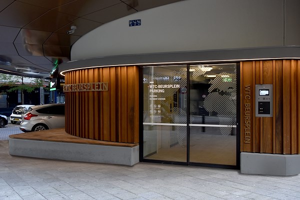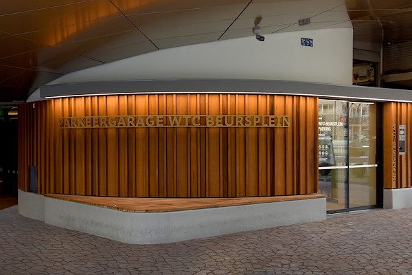 Bij de entrees van de parkeergarage WTC-Beursplein is gekozen voor stijlvolle gevelbekleding van geborsteld Fraké Noir. Dit hout dat rondom de ingangen is toegepast, geeft de parkeergarage een natuurlijke en eigentijdse uitstraling. Om te voldoen aan de veiligheidseisen en brandveiligheid te waarborgen, is het hout behandeld met de brandvertrager Flame Delay PT. Hierdoor combineert de gevel een warme, natuurlijke look met de hoogste mate van veiligheid.