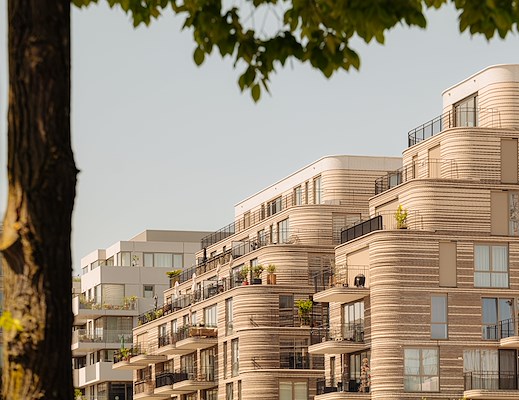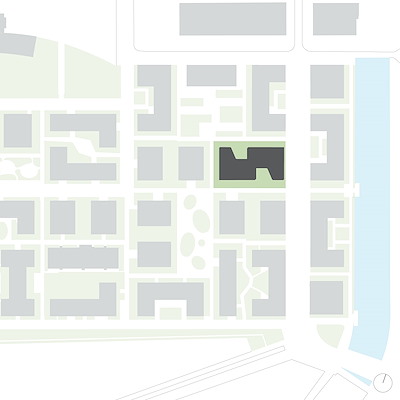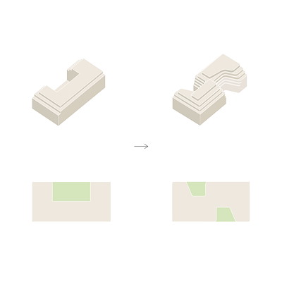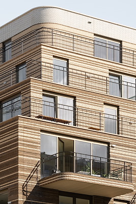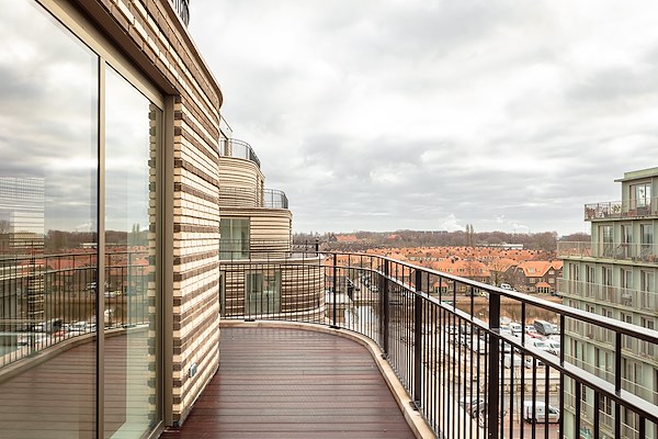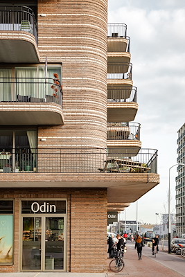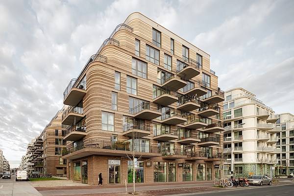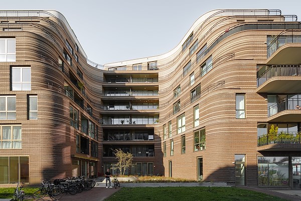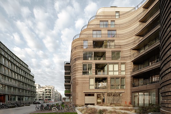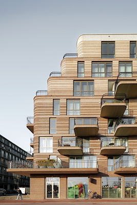 Op de bovenste verdiepingen trapt het gebouw terug, waardoor op deze lagen royale dakterrassen ontstaan. Op de lagere verdiepingen van de naastgelegen gebouwen en op straatniveau is hierdoor voldoende daglicht gegarandeerd. De 108 appartementen zijn georganiseerd rond drie stijgkernen. Door deze organisatie en door de getrapte verdiepingen ontstaat een gevarieerde woontypologie, met veel verschillende appartementen in diverse afmetingen.