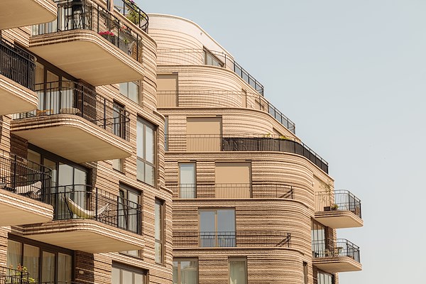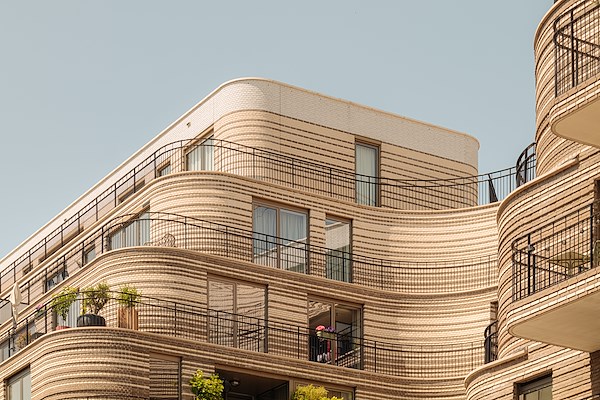 The Bow krijgt een ambachtelijke uitstraling door zijn verfijnde en bijzondere metselwerk gevels, die naast dat ze voorzien zijn van reliëf, ook langzaam van kleur veranderen van boven naar beneden. Hiervoor zijn de gevels opgezet met een palet van vier kleuren baksteen, waarbij ze langzaam verlopen van grijsbruin op de begane grond, via cappuccino, naar glanzend wit op de penthouse verdieping. Balkons en balustrades completeren het Metropolitane karakter van het blok, door de introductie van lange lijnen, die een extra laag van ornament aan het gebouw toevoegen.