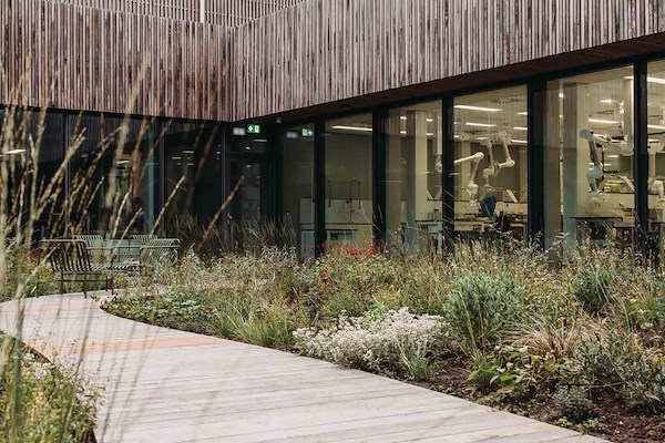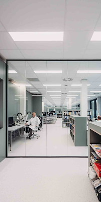 ?Sommige duurzame keuzes zijn direct zichtbaar, andere juist subtieler. Uniek voor een laboratoriumgebouw met strenge eisen is het veelvuldige gebruik van hout in de constructie, daar waar mogelijk, en het toepassen van hergebruikte materialen op de gevel. Ook het natuurlijk ingerichte landschap rondom het gebouw draagt bij aan duurzaamheid en biodiversiteit.