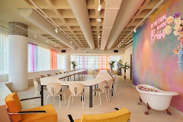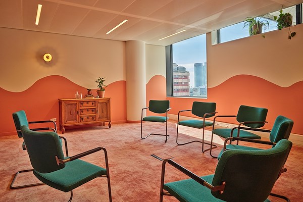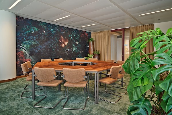 , zorgvuldig geselecteerd en opnieuw ingezet in het nieuwe ontwerp. Deze tactiele herinneringen geven het interieur een warme herkenbaarheid en emotionele gelaagdheid. Ze vertellen het verhaal van waar de community vandaan komt – en waar ze naartoe gaat.Elke ruimte binnen Wonders of Work heeft een uitgesproken identiteit, met een duidelijke functie én sfeer. In de vergaderruimtes ligt thematisch afgestemd tapijt, dat aansluit bij de namen van de ruimtes. Denk aan texturen en kleuren die de beleving verdiepen. De open werkzones, verkeersruimtes en sanitaire voorzieningen zijn afgewerkt met een