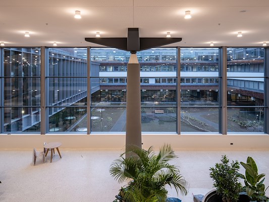 Atrium, restaurant, kashal en werkomgeving