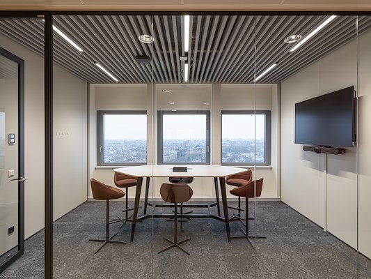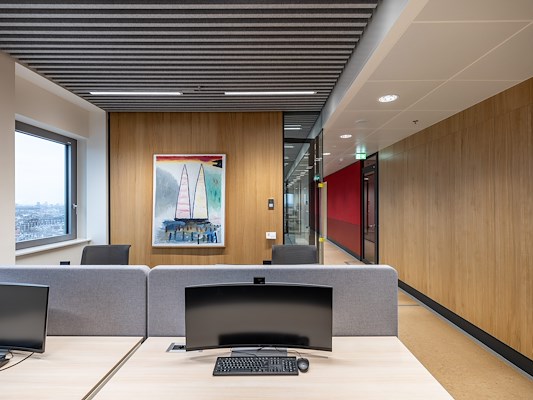 De WELL Platinum werkomgeving is ontworpen voor focus, samenwerking en ontmoeting, met veel groen, daglicht en uitzicht. Mecanoo voegde aan Duintjers palet van beton, glas en staal warme circulaire en/of biobased materialen toe. Wanden zijn afgewerkt met gekleurd PET-vilt en FSC-gecertificeerd hout. De tl-verlichting maakte plaats voor energiezuinige functionele, sfeer- en theatrale verlichting. Alle installaties zijn ondergebracht in de kelder, waardoor op de bovenste verdieping van de toren panoramische ruimtes ontstonden voor bijzondere bijeenkomsten.