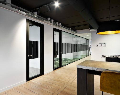 Glass system wall with flush doors at Coolmark in Barendrecht,