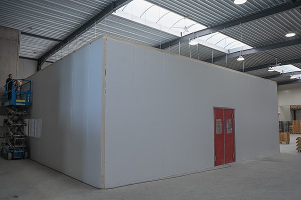 . Deze panelen zijn bij uitstek geschikt voor omgevingen waar vocht, temperatuurverschillen en intensieve reiniging dagelijkse kost zijn. Hierdoor kon de nieuwe ruimte snel en efficiënt gerealiseerd worden zonder grote ingrepen aan het bestaande pand.