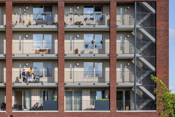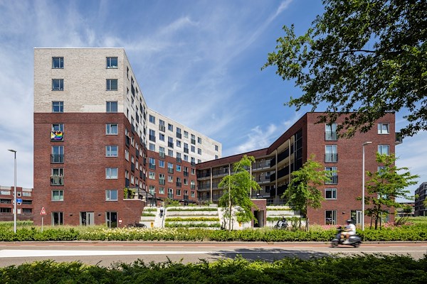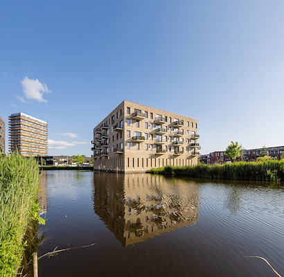 In de architectuur hebben we iets bijzonders gedaan, we hebben ‘speklagen’ gemaakt in het gevelmetselwerk. Dat zijn gemetselde banden die een klein beetje uitsteken en die geven een hele mooie schaduwwerking in de gevels. Wat ook opvalt zijn de gevels zonder hemelwaterafvoer, de afvoeren van de balkons zijn namelijk opgenomen in de spouw. Ponte di Rialto is in 2022 door ABB Bouwgroep gebouwd.