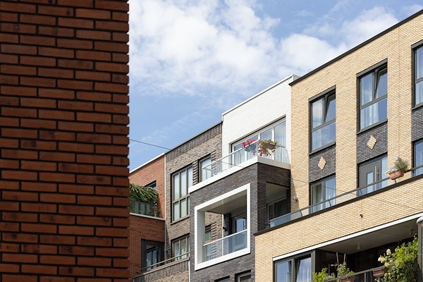 Om het gewenste aantal woningen te realiseren is gekozen voor bouwblokken samengesteld uit stadswoningen en appartementen. Een onopvallend vormgegeven galerij ontsluit de boven de stadswoningen gelegen appartementen en penthouse-maisonnettes. De stadswoningen hebben hun entree in de voortuin aan de autoluwe straat. Uniforme erfscheidingen met hetzelfde hekwerk en beukenhagen zorgen ervoor dat het blok toch één geheel vormt.