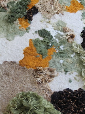 Anouk is een grote vriendelijke reuzin! Dit vilten wandkleed is een blikvanger die direct warmte en karakter toevoegt aan de ruimte. De zorgvuldig gekozen kleuren en texturen sluiten perfect aan bij het interieur en veranderen subtiel met het perspectief – vanaf de balustrade oogt het anders dan aan tafel.