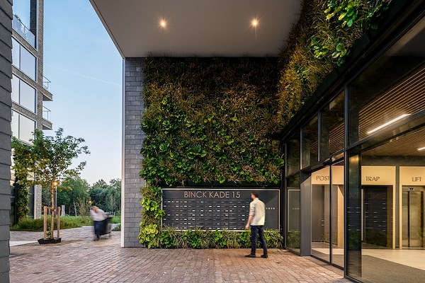 Mede dankzij de explosieve toename in groen is op Binck Eiland een fijne leefomgeving ontstaan. Doordat het U-vormige blok van de laagbouw een compacte structuur heeft gekregen, zijn de kades ingericht als aantrekkelijk wandel- en verblijfsgebied. Loop langs de kade naar de kopse kant van het eiland, waar een groen parkje is aangelegd en veel mogelijkheden zijn om te verblijven, zoals een lange zitrand gericht op de avondzon of het terras van de horeca welke in de plint van de hoogbouw gevestigd is. Door de ingang van de parkeergarage direct vanaf de hoofdontsluiting bereikbaar te maken, is het eiland autoluw gemaakt. Zo is er veel ruimte voor voorzieningen om te kunnen genieten van de omgeving.