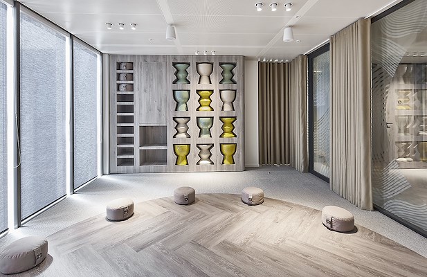 De systeemwanden vormen een subtiele, maar essentiële schakel in het totaalconcept. Ze ondersteunen de gelaagdheid van het ontwerp – van formeel overleg tot stille focus – en dragen bij aan een lichte, professionele sfeer waarin medewerkers elkaar ontmoeten, samenwerken en zich kunnen terugtrekken waar nodig.