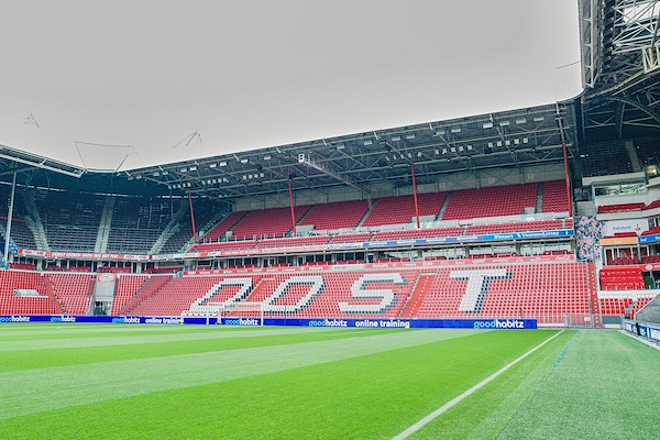 Heijmans en installatiebedrijf waren onder de indruk van maatvoering, snelle levering in de juiste kleur en de stijlvolle integratie in het stadionbeeld.