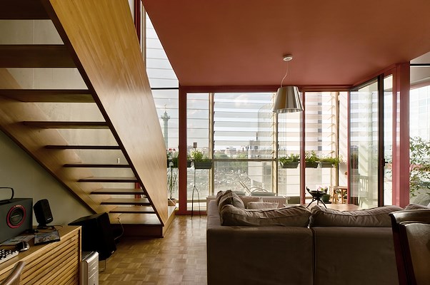 Een woongebouw als stedelijk statement: Ilôt Biscornet fungeert niet als buffer voor zijn bewoners tegen de bruisende stad, maar keert zich juist naar de stad toe. Het kijkt uit over het drukke Place de la Bastille, waar in 1789 de Franse Revolutie begon. Ignacio Prego en Jean Bocabeille van BFV Architectes ontwierpen het zeven verdiepingen hoge gebouw, dat 14 sociale woningen en een galerij omvat. In plaats van de typische strakke puntvorm zoals het Flatiron Building, gaat de onregelmatige trapeziumvorm van het gebouw met glazen gevel een dialoog aan met de omgeving en maakt het optimaal gebruik van elke meter op het kleine trapeziumvormige/onregelmatige langwerpige perceel van 176 m².