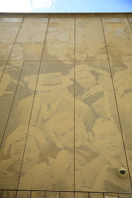 Het paviljoen is voorzien van een rijk bewerkte gevel. Er is gekozen voor een uitvoering in één materiaal: goudkleurig geanodiseerd aluminium met hartvormige perforaties. De perforaties verbeelden een mensenmenigte op de Coolsingel. Dit warm en stijlvol ogende aluminium is tegelijkertijd ook hufterproof en duurzaam.
